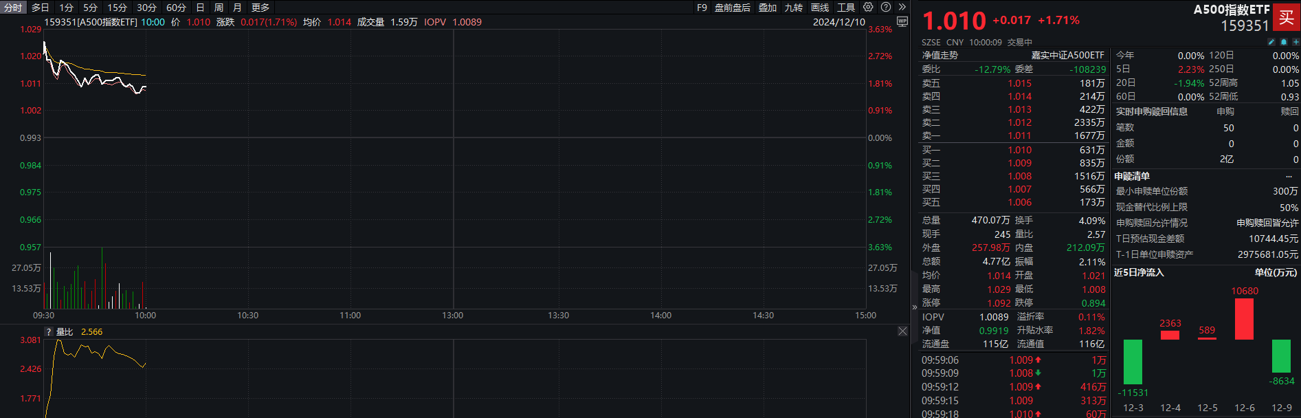 联系ETF方面,A500指数ETF(159351)现涨1.71%,交投活跃。具体来看,该ETF成交额达4.77亿元,换手率为4.09%。